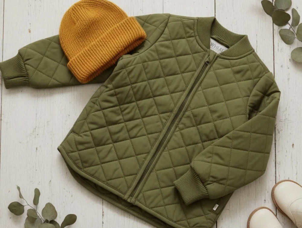Termojakke i farven dry moss fra Wheat.