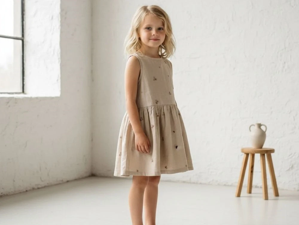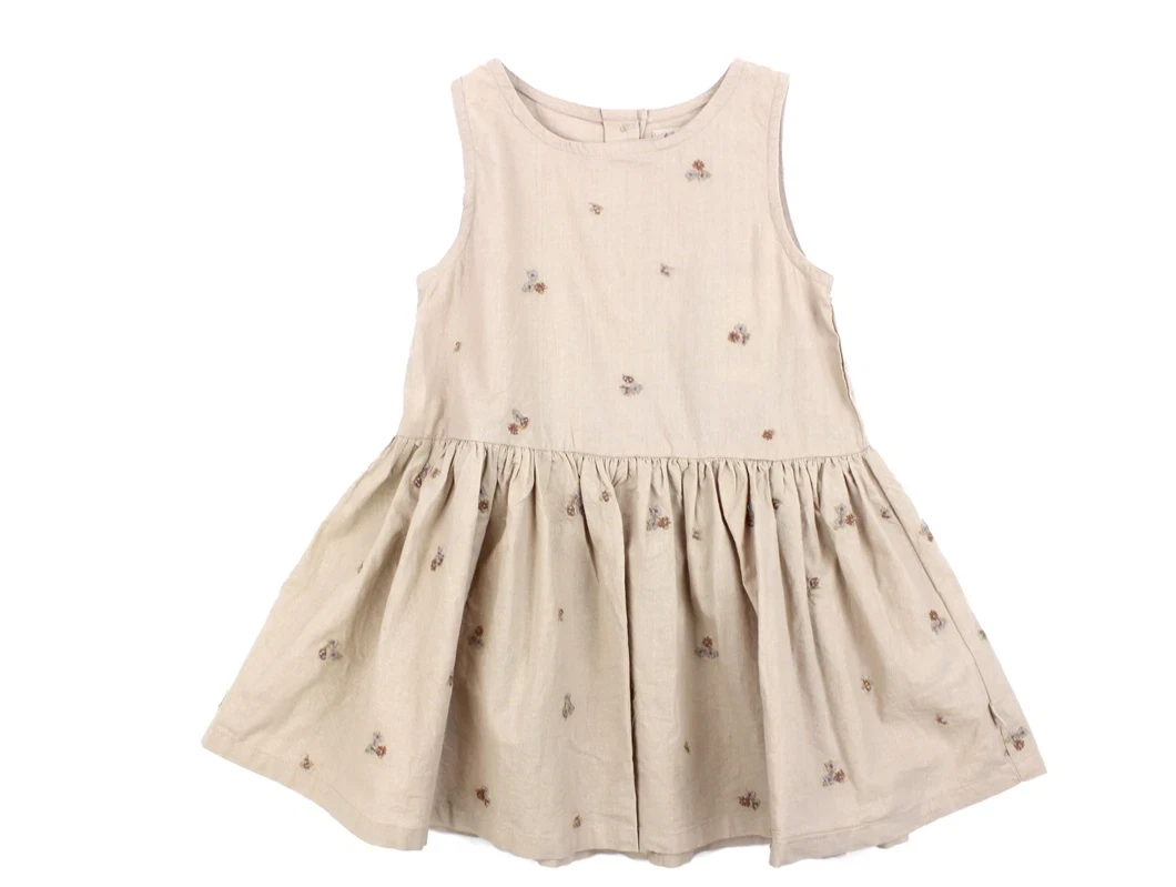 Kjole uden ærmer med broderede blomster fra Wheat.