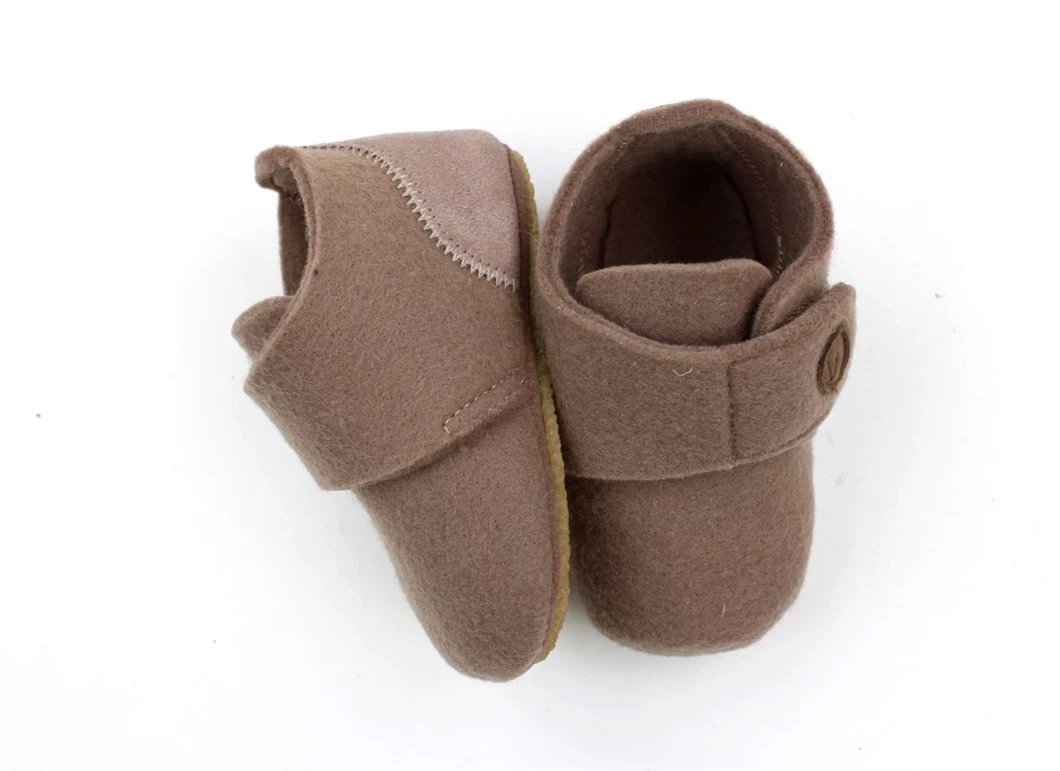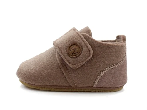 Uldfilthjemmesko i farven hazel fra Wheat. Hjemmeskoene lukkes nemt med velcrorem.