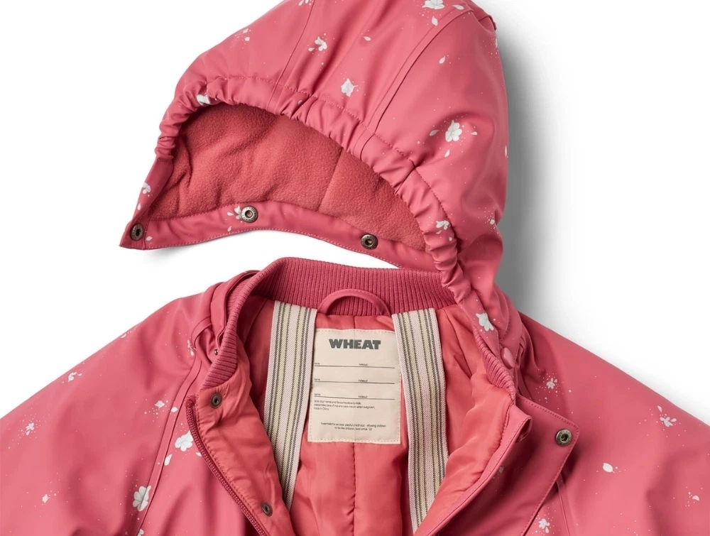 Flyverdragt i pink nuance (floating flowers) fra Wheat med fint blomsterprint og praktiske detaljer til vinter.