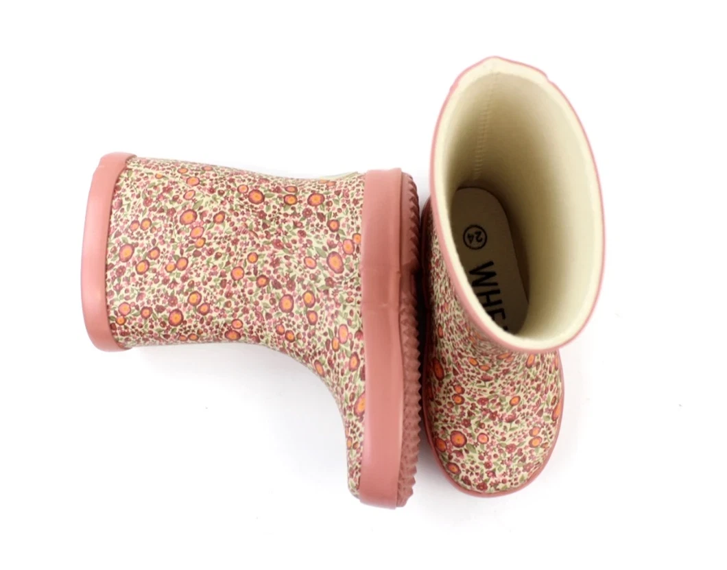 Gummistøvler med blomsterprint fra Wheat. Støvlerne har refleks på hælkappen.