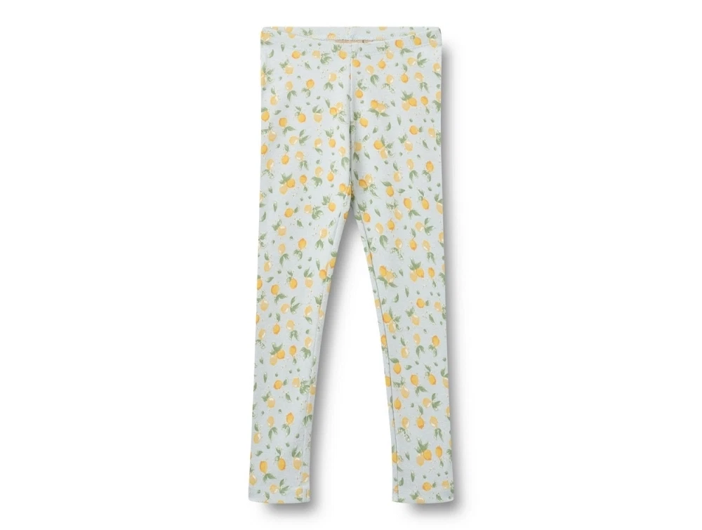 Leggings Jules i lys blå nuance (summer blue) med citrusprint fra Wheat.