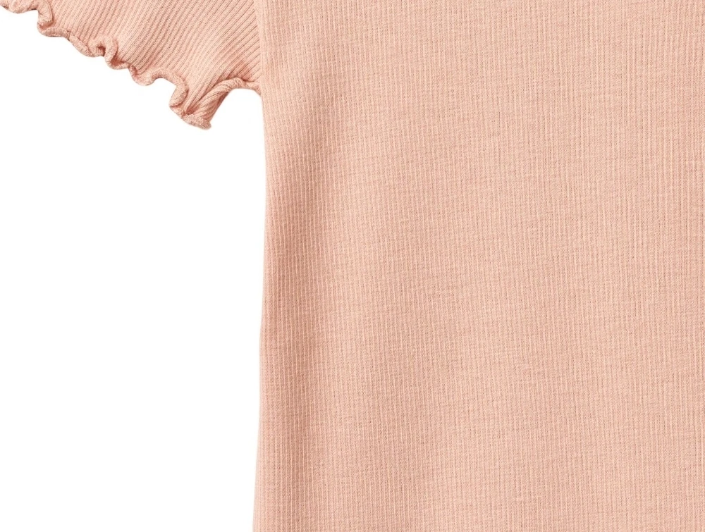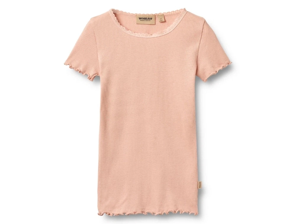 Kortærmet rib t-shirt i lys støvet rosa nuance (rose cloud) fra Wheat.