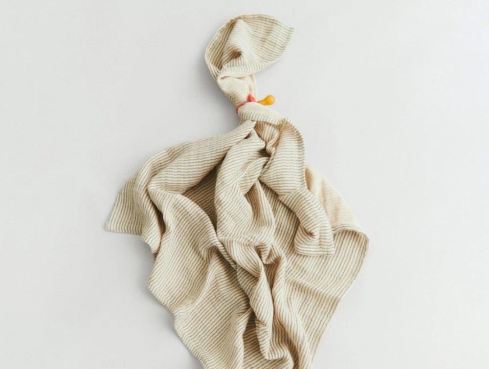 Sættet består af én ensfarvet og én stribet ble, begge i afdæmpede naturtoner. Perfekte til hverdagsbrug – uundværlige ved amning, bleskift, som savleklud eller nusseklud.