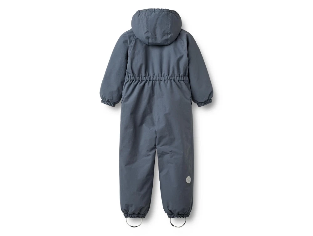 Wheat flyverdragt i blå nuance med hætte og lynlås set forfraWheat Laffa flyverdragt greyblue med fleecefor og aftagelig hætteWheat flyverdragt i blå nuance set bagfra med refleks