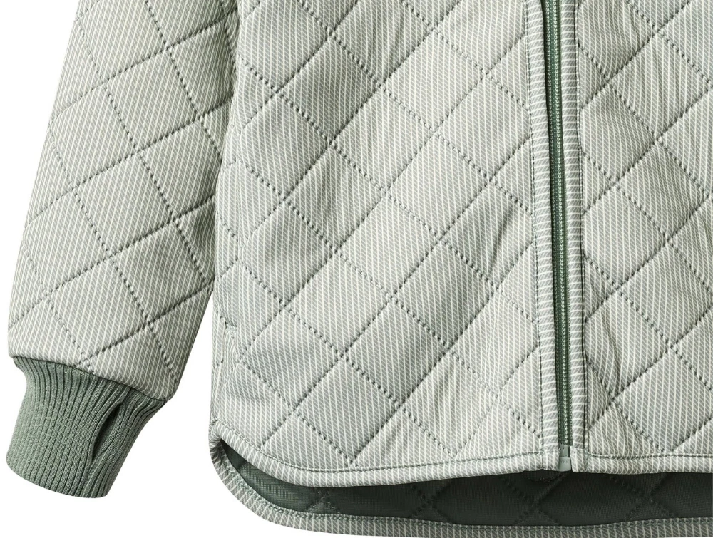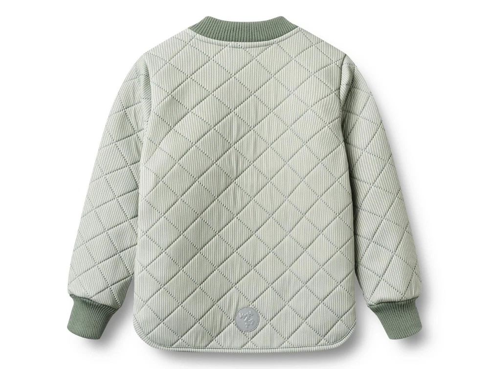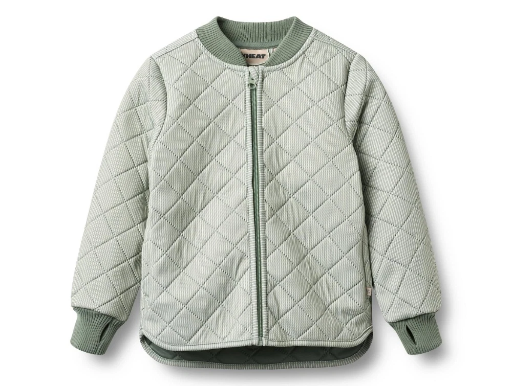 Termojakke i grønstribet design (green stripe) fra Wheat med ribkanter.