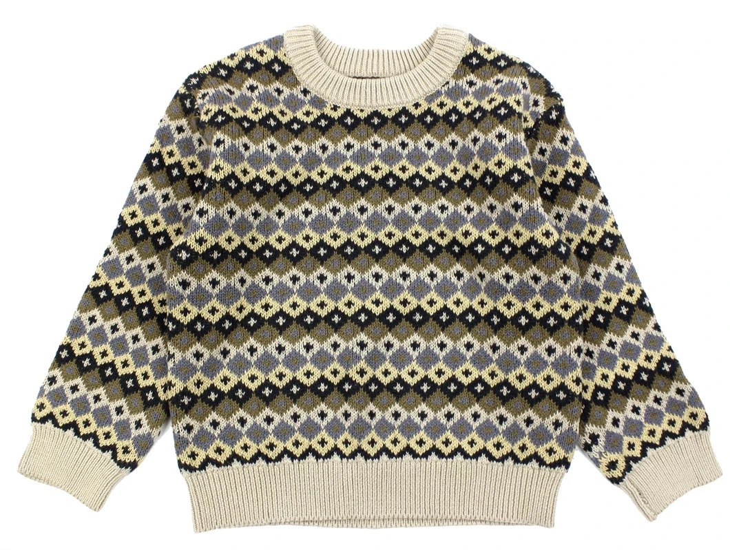 Skøn striktrøje med jacquard-mønster i farvetemaet multi blue fra Wheat.