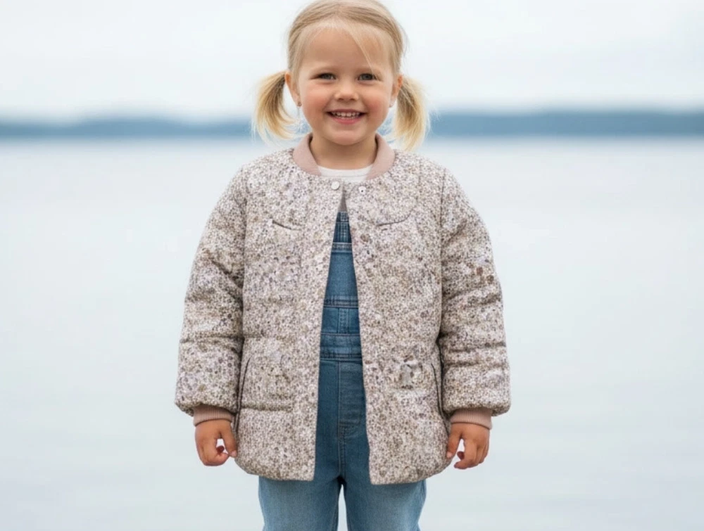 Overgangsjakke i let puffer med blomsterprint fra Wheat.