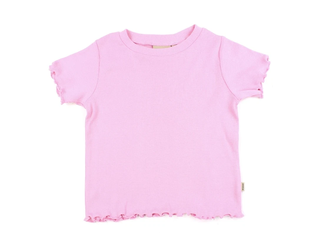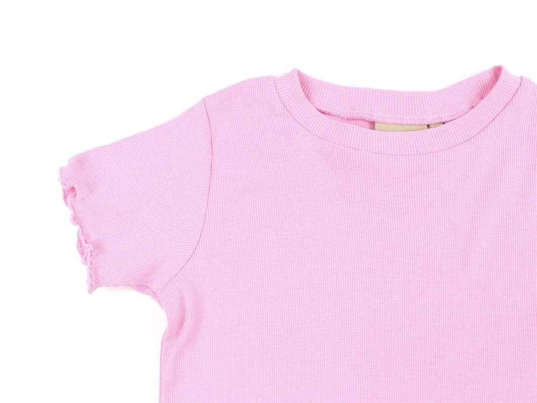 Kortærmet boxy t-shirt i rib i farven pink fra Wheat.