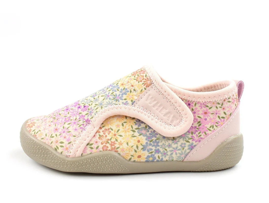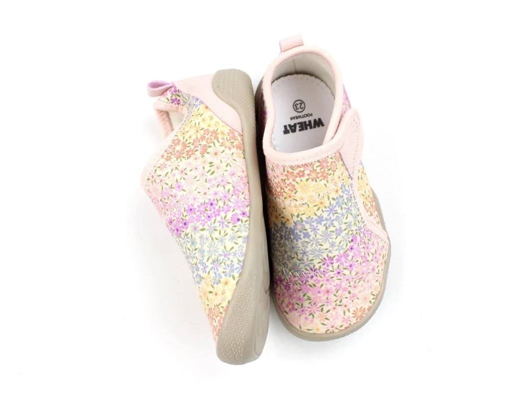 Disse badesko/strandsko med print af blomster i regnbueformation fra Wheat er både søde og praktiske.