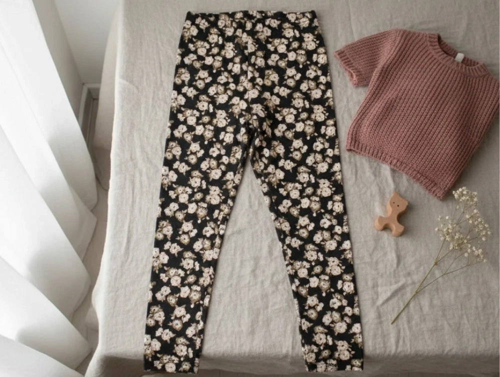 Leggings i farven raven anemones med skønt blomsterprint fra Wheat.