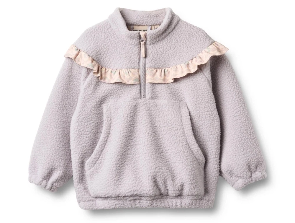 Fleece anorak i lys lilla nuance (lavender rain) fra Wheat.