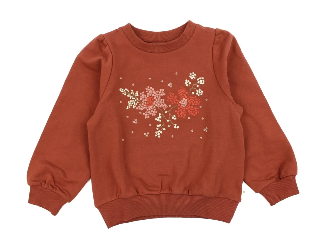 Sweatshirt i farven red med blomsterbroderi fra Wheat.
