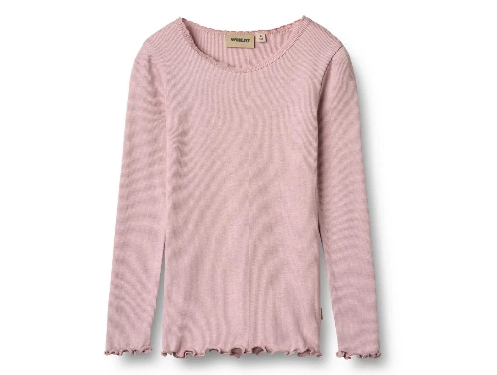 Blød og strækbar ribbet top fra Wheat i en smuk lavendellilla med fine blondedetaljer ved halsudskæringen. Toppen har en tætsiddende pasform og er lavet i en blanding af økologisk bomuld, Lenzing™ modal og elastan, hvilket gør den behagelig at have på.