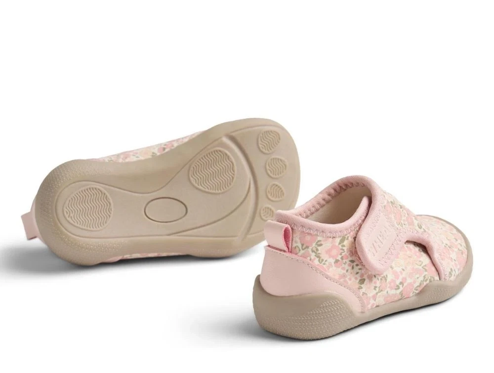 Let og fleksibel strandsko i neopren med Wheat's karakteristiske blomsterprint. Skoene lukkes nemt med velcro på siden og gør dem lette at tage af og på.