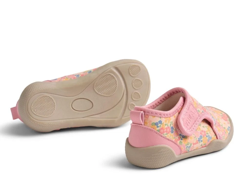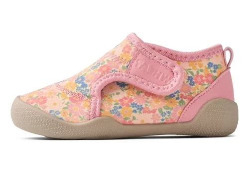 Let og fleksibel strandsko i neopren med Wheat's karakteristiske blomsterprint. Skoene lukkes nemt med velcro på siden og gør dem lette at tage af og på.