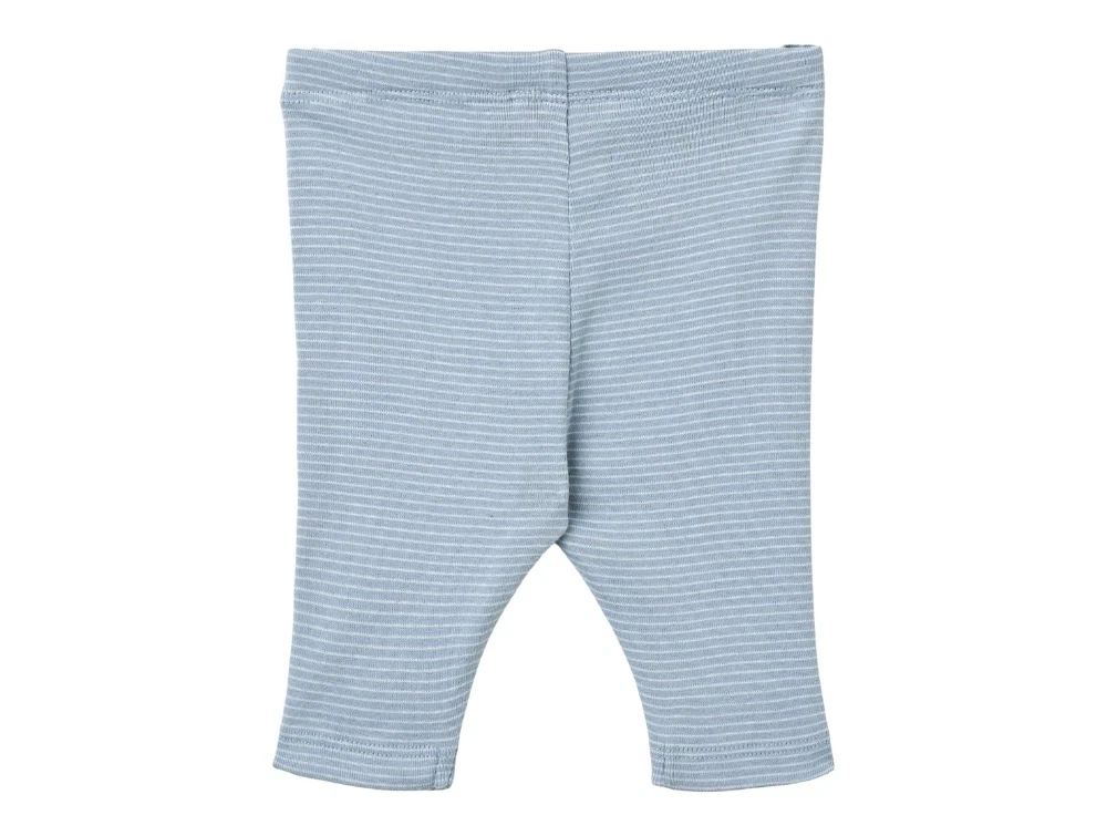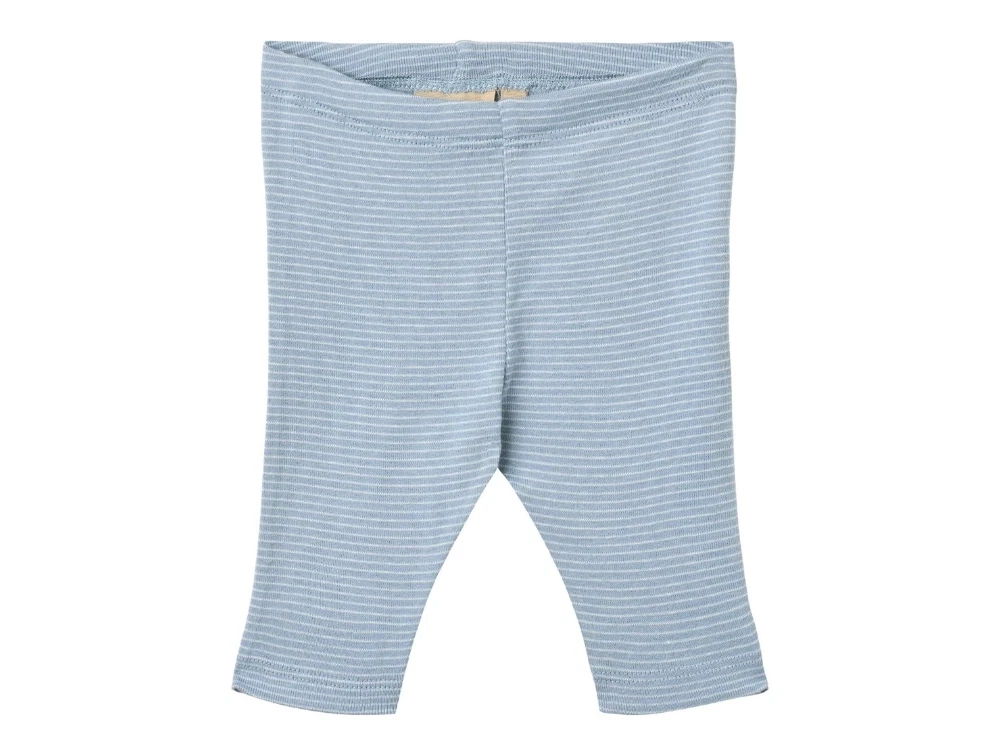 Bløde leggings med fine lyseblå og hvide striber (faded blue stripe) fra Wheat.