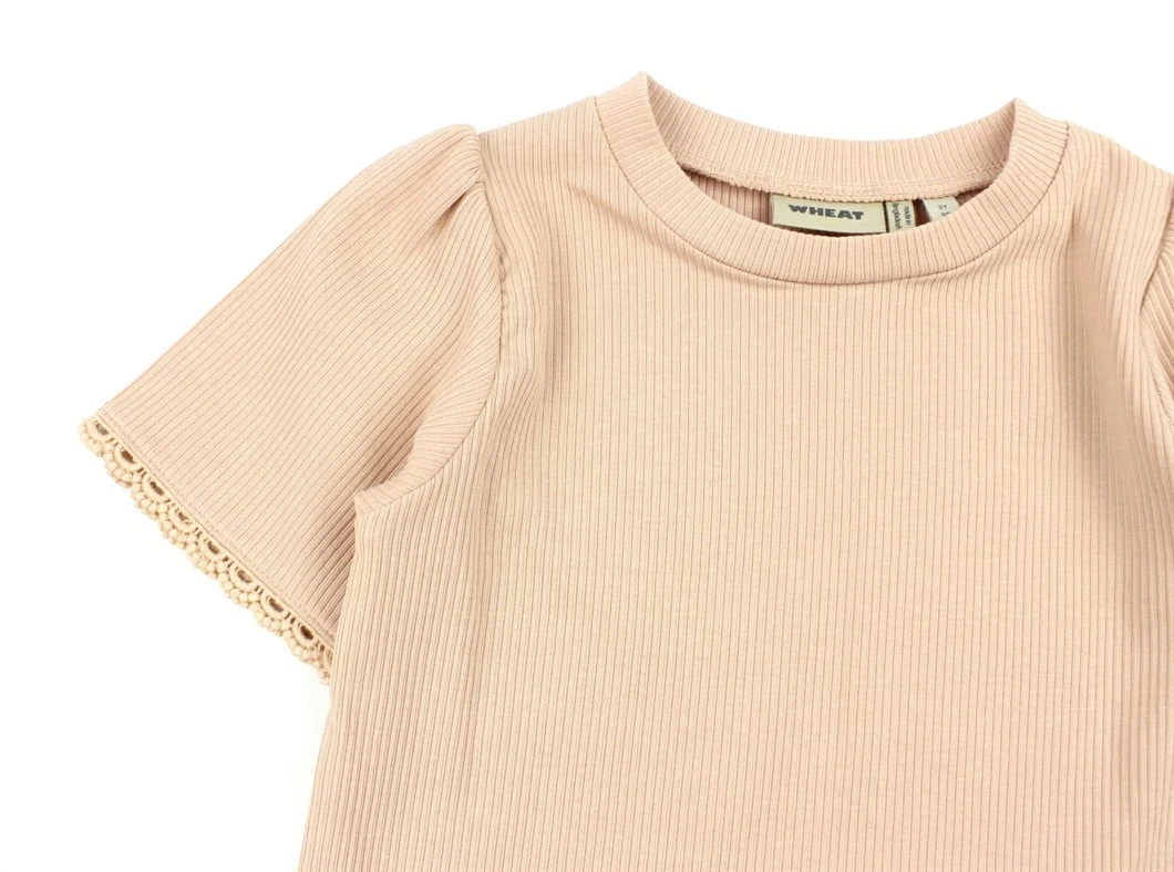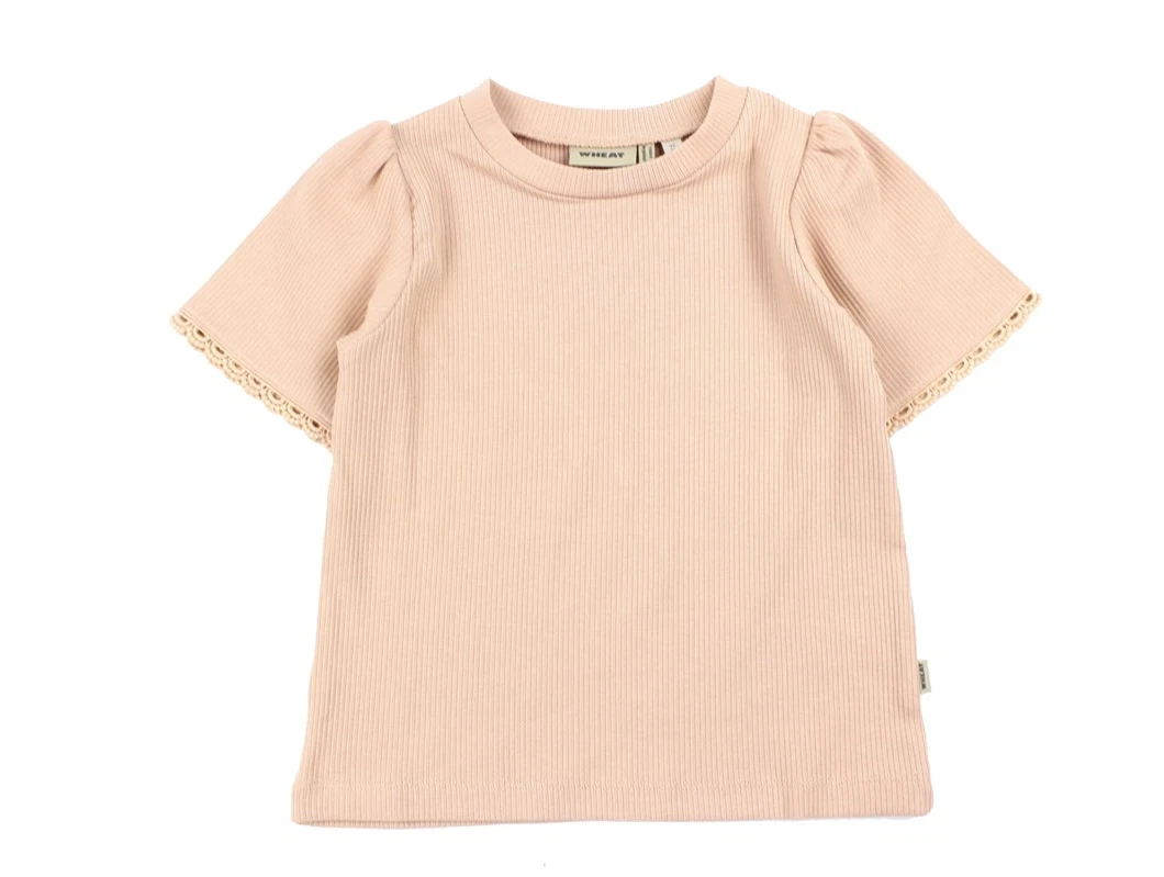 Kortærmet boxy t-shirt i rib i farven soft coral fra Wheat.