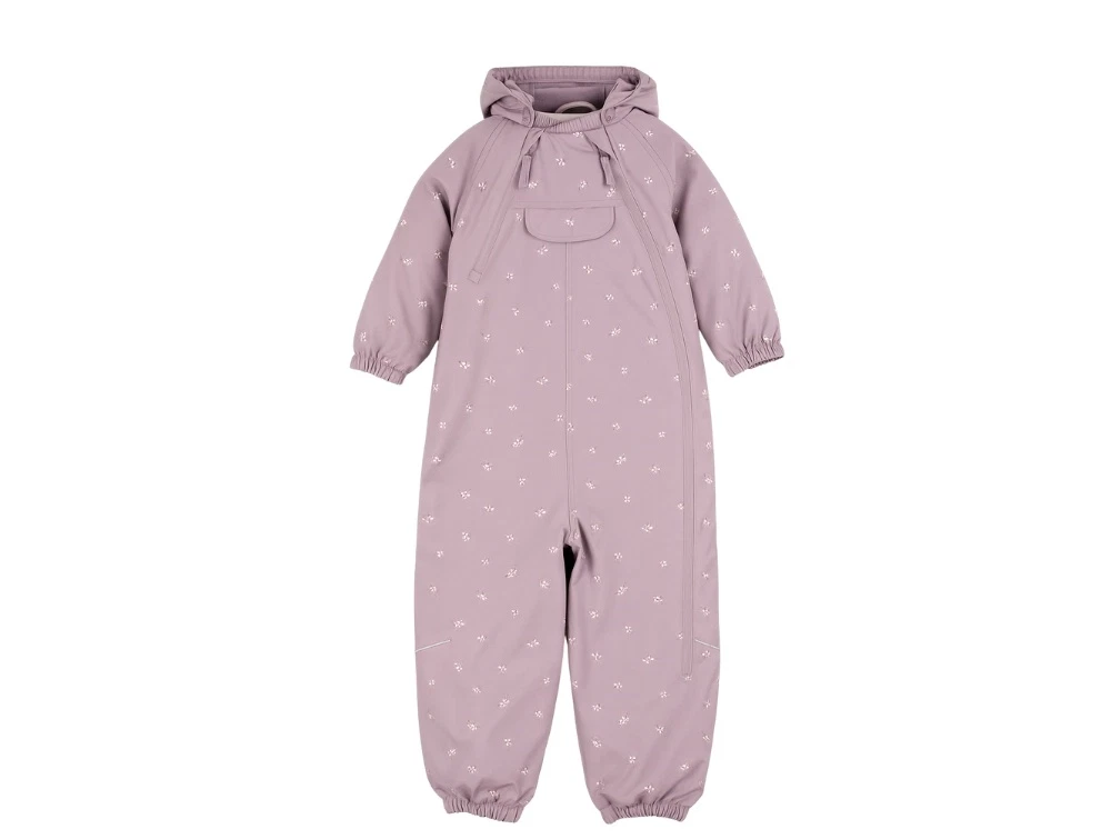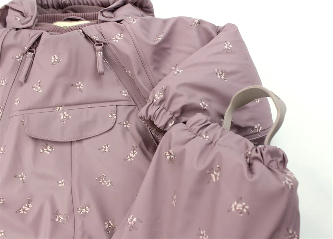 Gummiflyverdragt i farven soft lilac med blomsterprint fra Wheat.