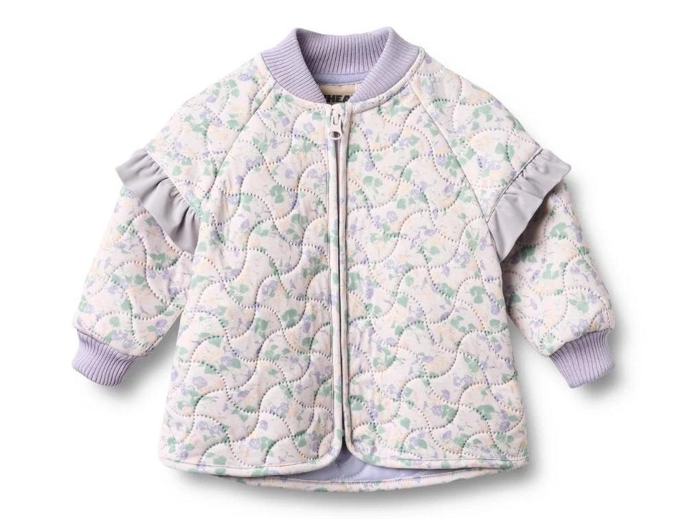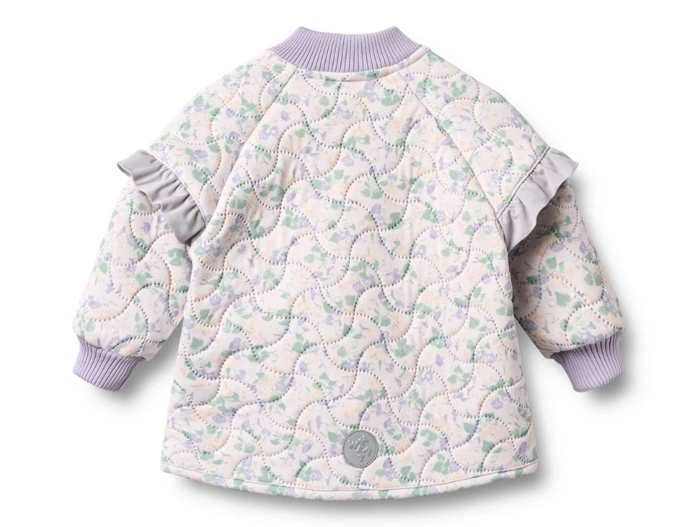 Termojakke med blomstret print (purple light petunias) fra Wheat.