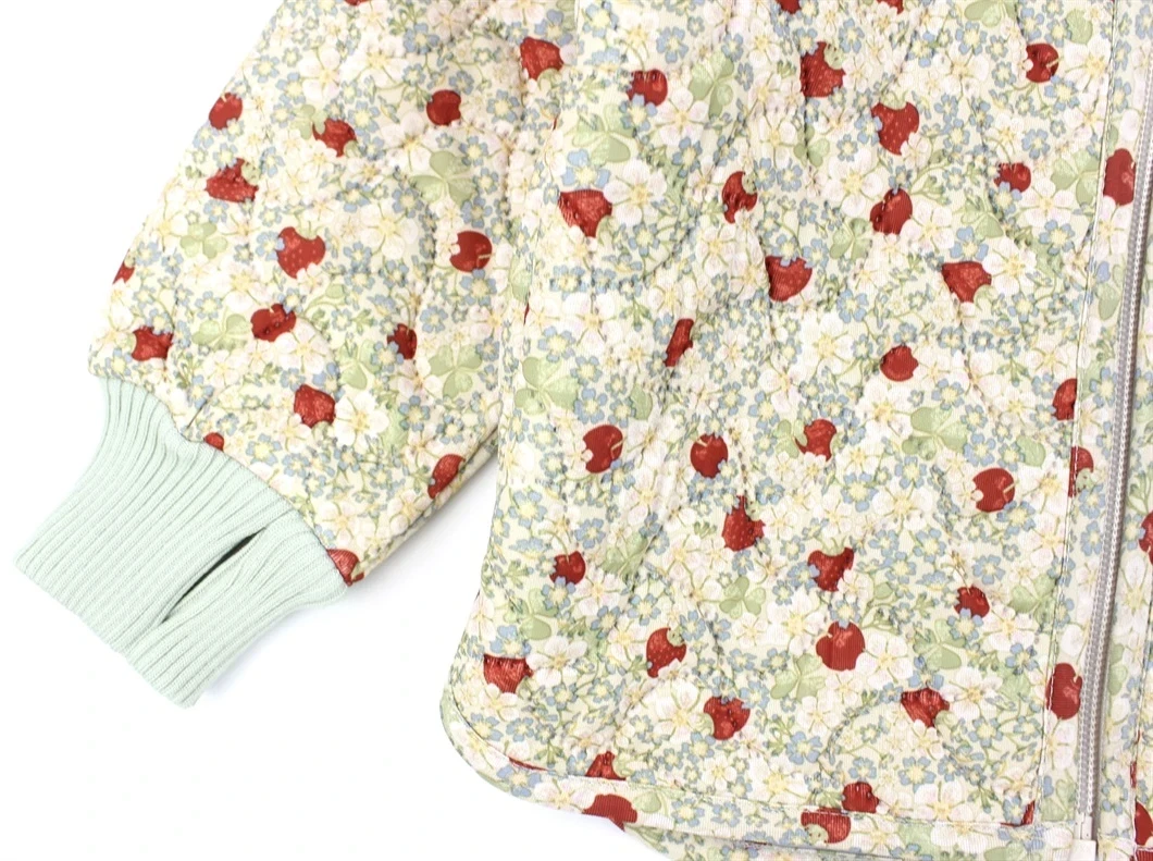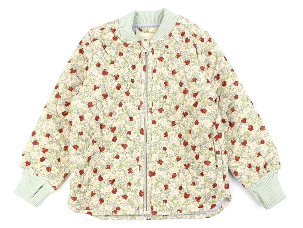 Termojakke med jordbærprint fra Wheat. Jakken har to lommer.