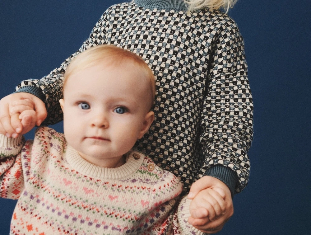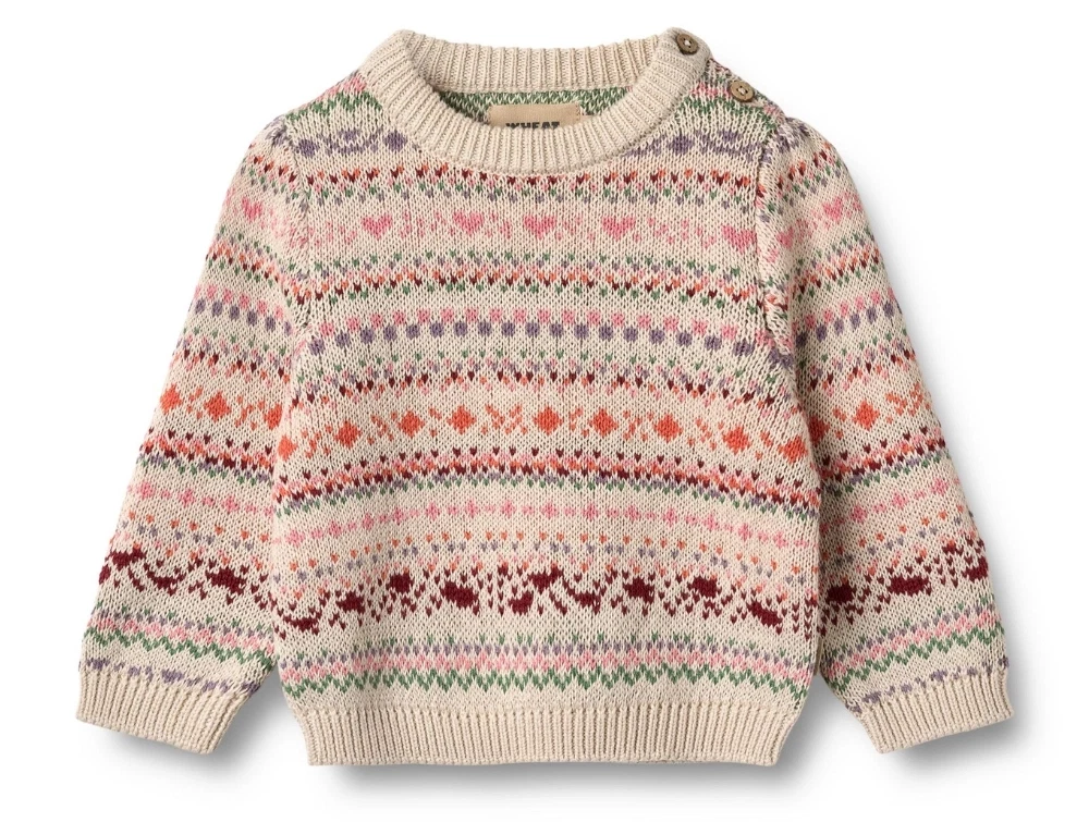 Wheat striktrøje multi med jacquardmønster og skulderåbning set forfraWheat striktrøje multi med jacquardmønster og skulderåbning set bagfraBaby iført Wheat striktrøje multi med jacquardmønster og skulderåbningWheat striktrøje multi med jacquardmønster og skulderåbning på baby og barn
