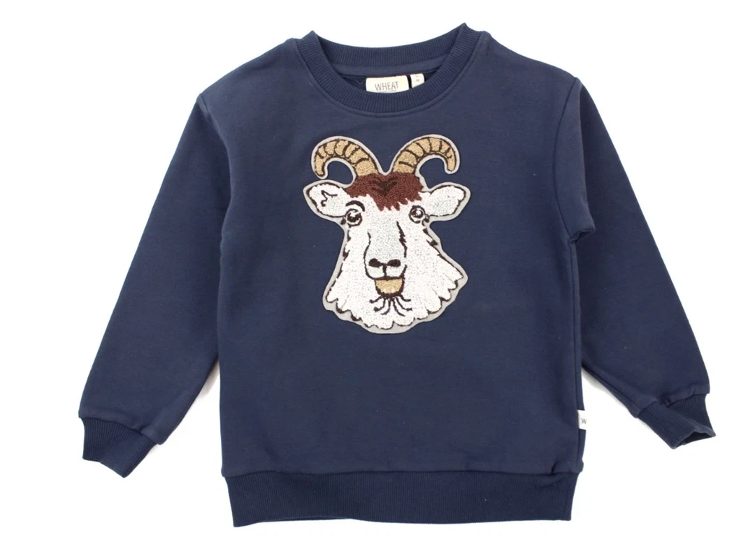 Sweatshirt i farven sea storm med gedeapplikation fra Wheat.