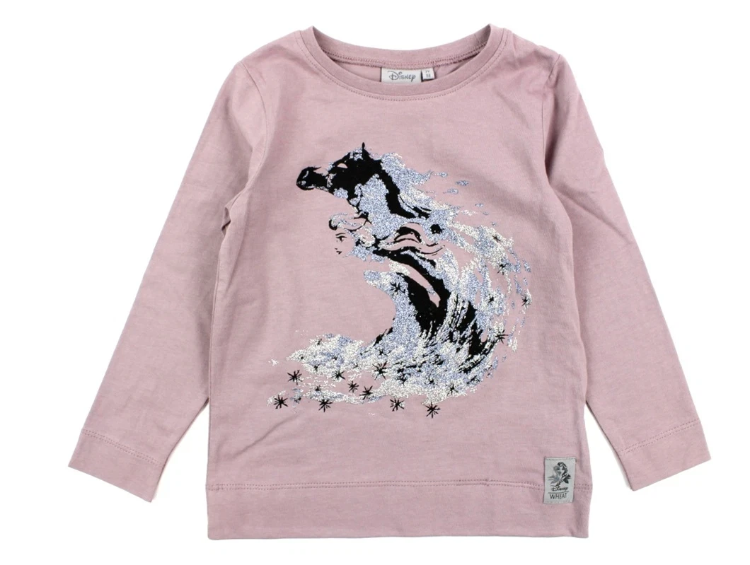 T-shirt i farven dusty lavender med glimmer og Frost-print fra Wheat.