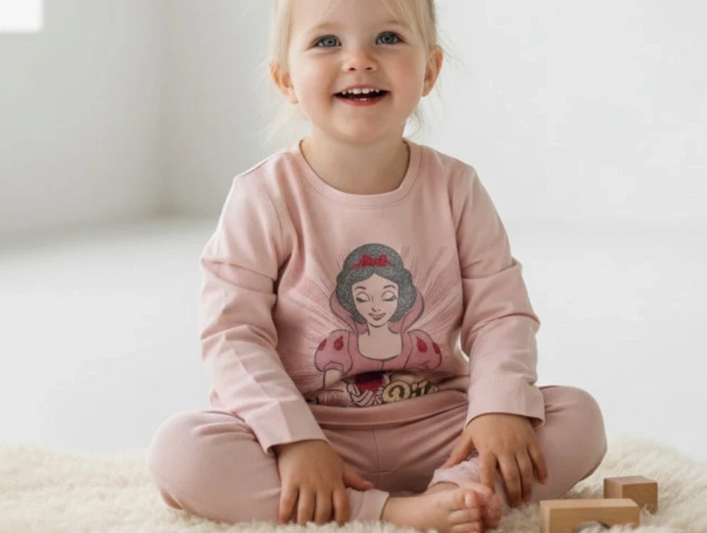 Langærmet rosa t-shirt med Snehvide-print og glimmer fra Wheat.