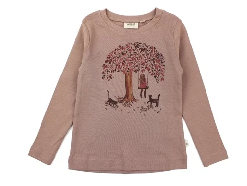 Langærmet t-shirt i farven powder brown med print fra Wheat.