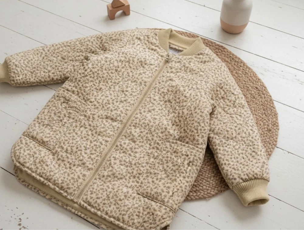 Lang termojakke med print fra Wheat. Jakken har to lommer og ribkant på ærmerne.