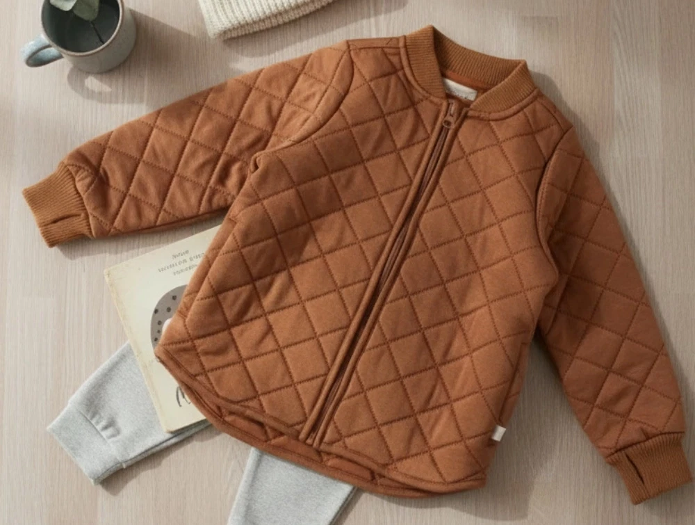 Termojakke i farven amber melange fra Wheat. Jakken har to lommer.