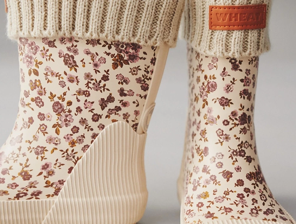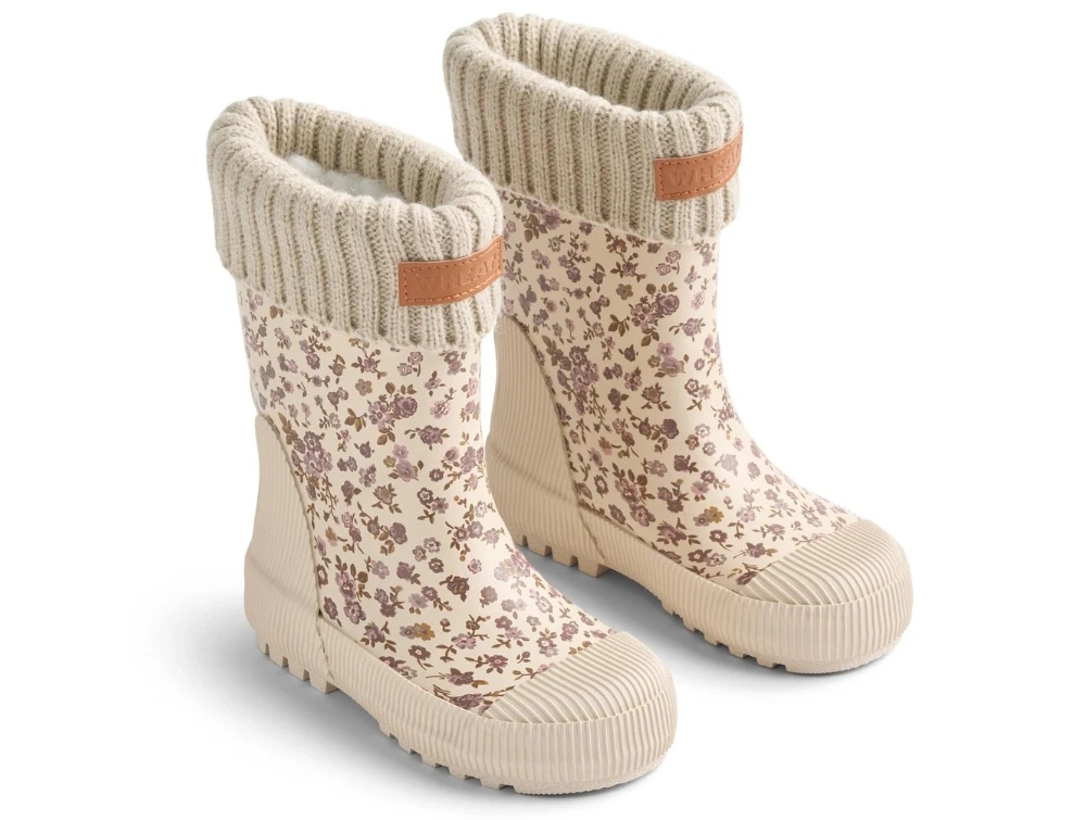 Wheat vintergummistøvle med blomster med aftageligt uldsokfor