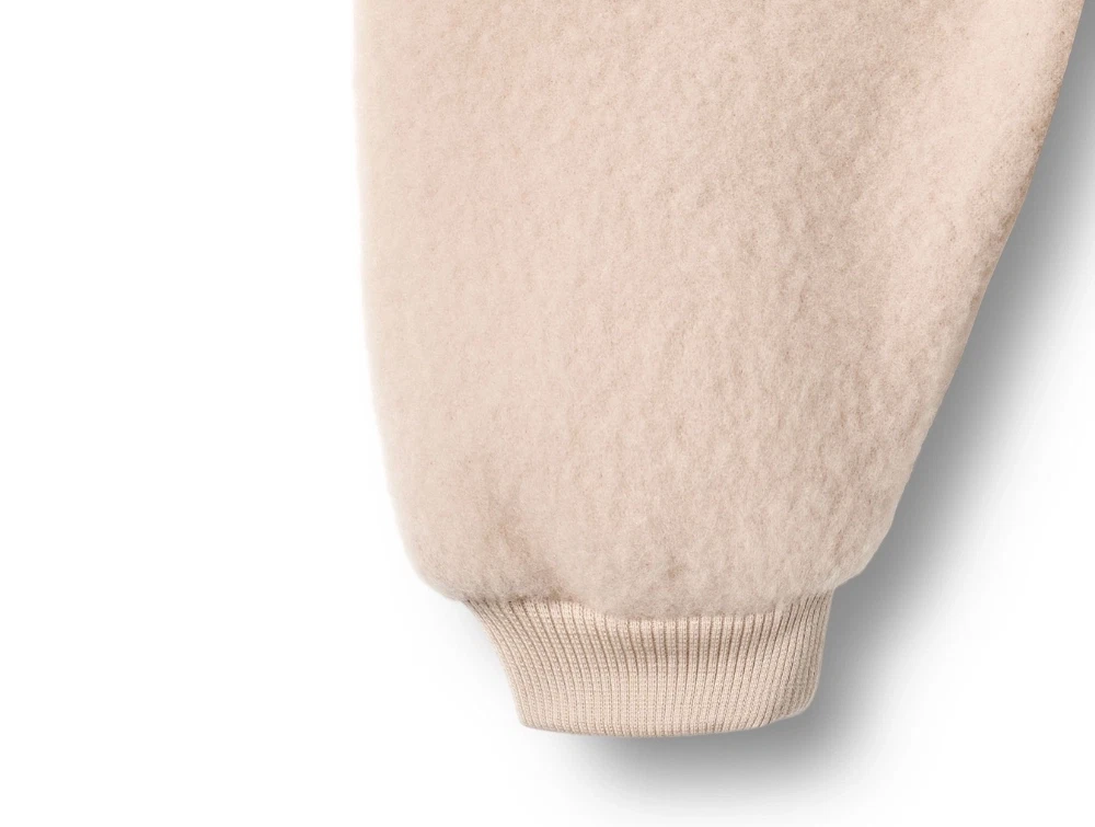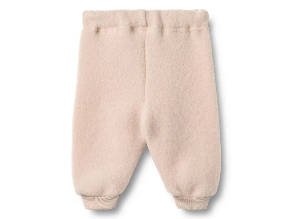 Uldfleece bukser i lyserød lilla nuance fra Wheat Wool. Bløde og praktiske til de mindste.