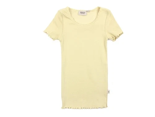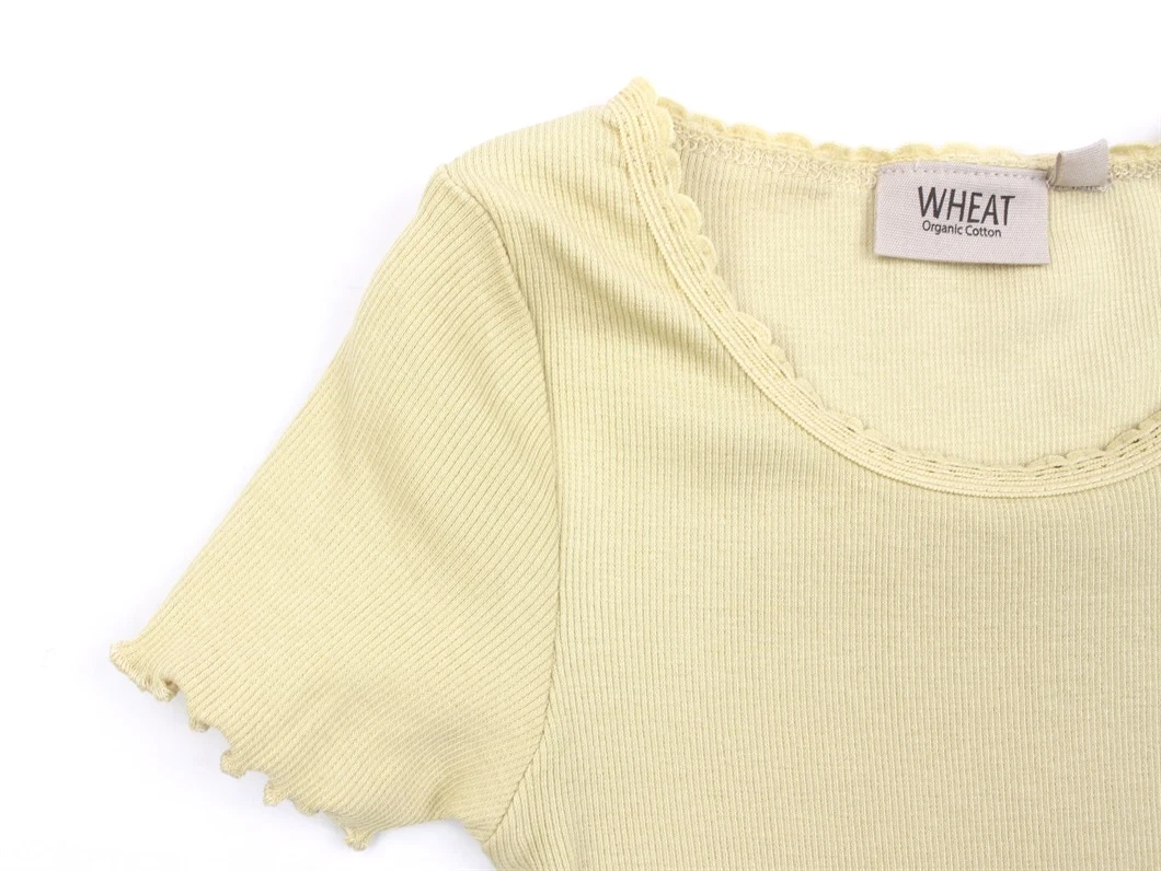 Kortærmet t-shirt i rib i farven yellow dream med blondekant fra Wheat.