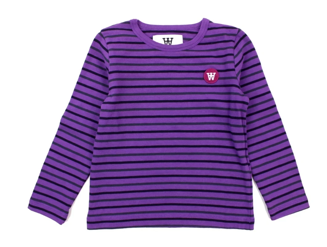 Bluse med striber i farven light amethyst med dobbelt A patch fra Wood Wood.