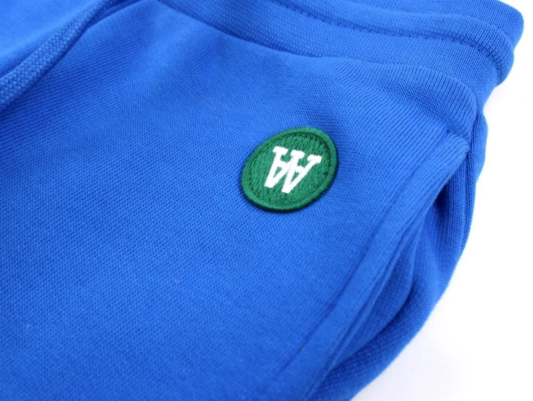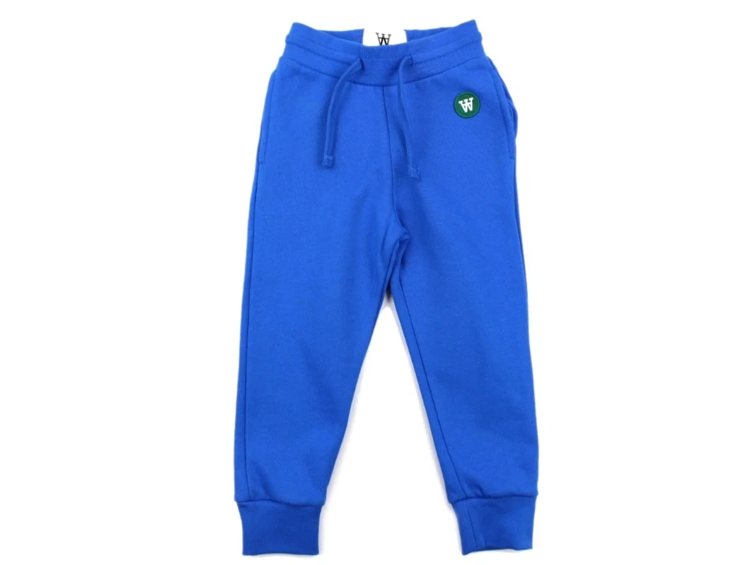 Blå bukser/sweatpants med to lommer og elastik i linning fra Wood Wood.