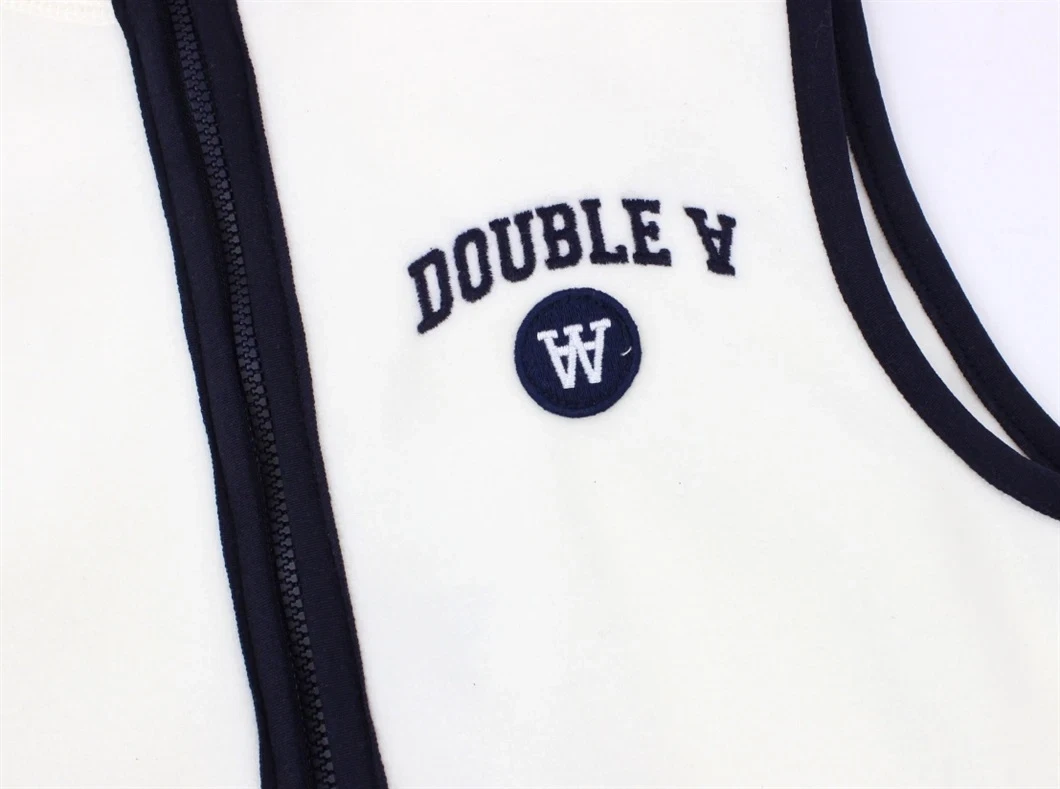 Fleecevest i off-white med lynlås, to lommer og double A-patch fra Wood Wood.