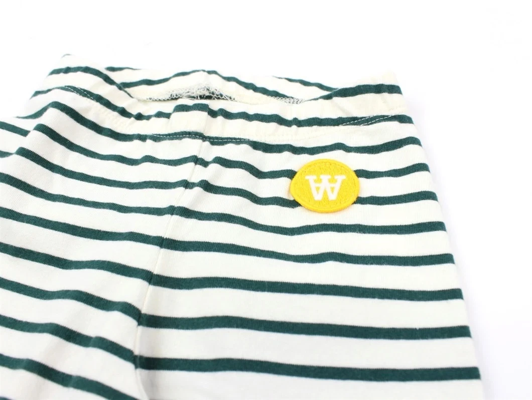 Råhvide leggings med grønne striber og gult dobbelt A patch fra Wood Wood.