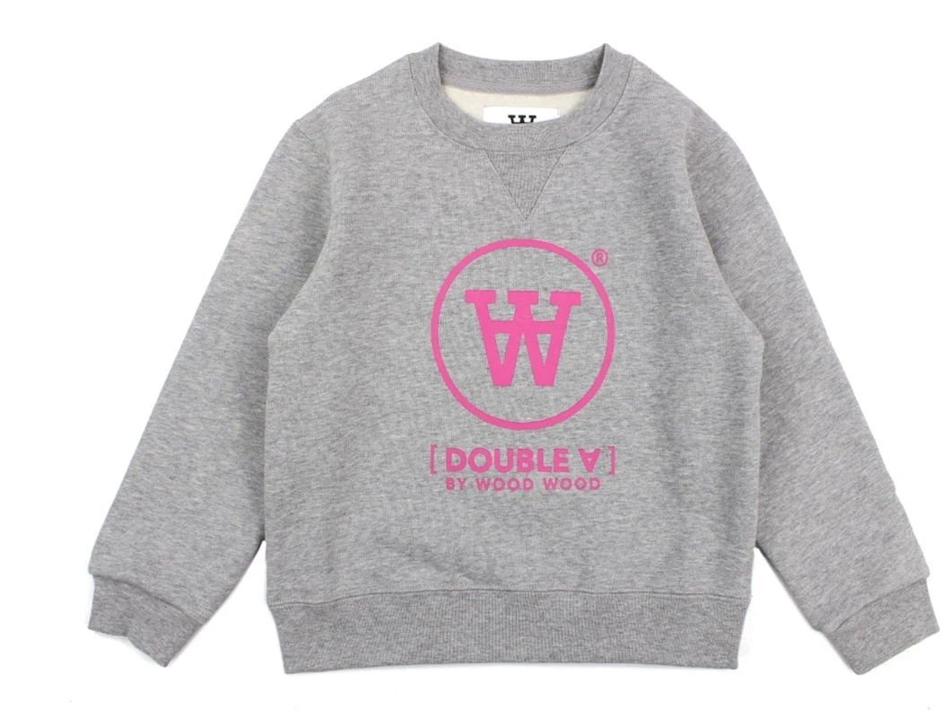 Grå sweatshirt pink dobbelt A patch fra Wood Wood.