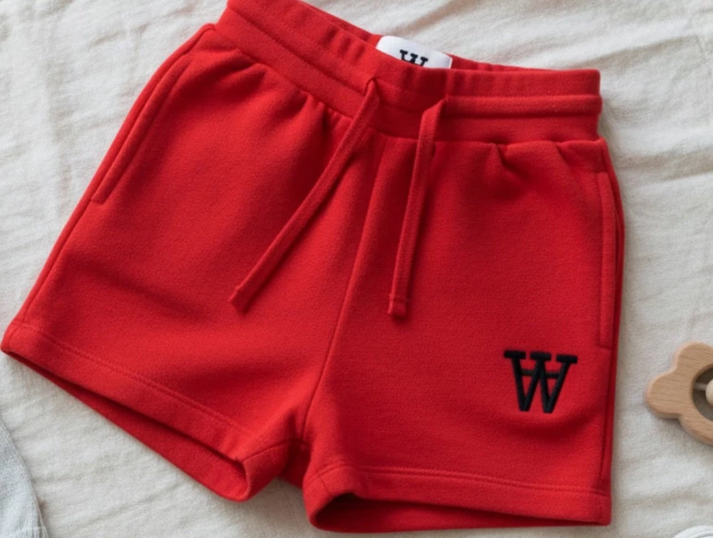 Sweatshorts i farven apple red med dobbelt A application fra Wood Wood.