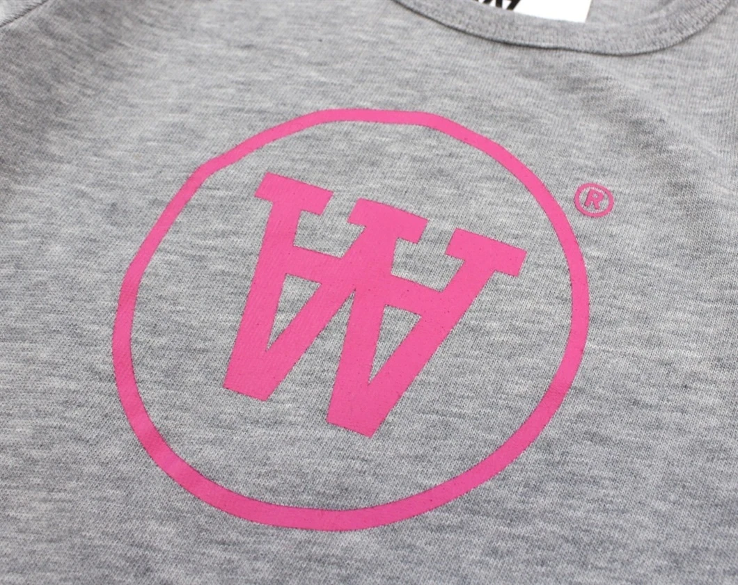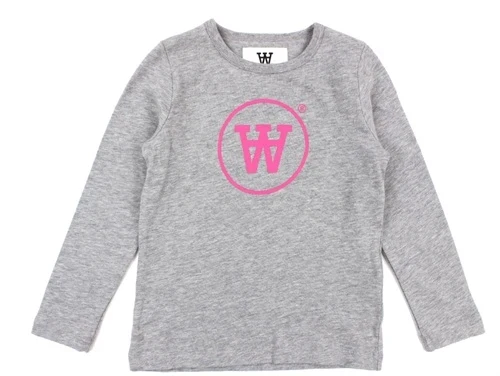 Grå langærmet t-shirt med pink dobbelt A patch fra Wood Wood.