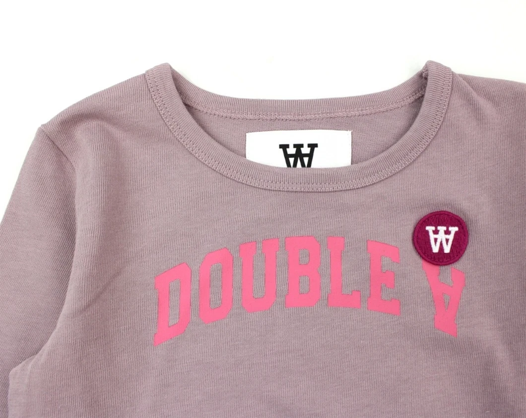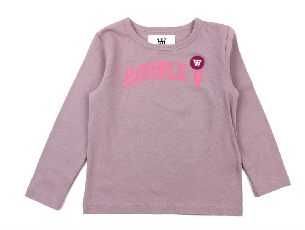 Langærmet t-shirt i farven light amethyst med dobbelt A logo og patch fra Wood Wood.