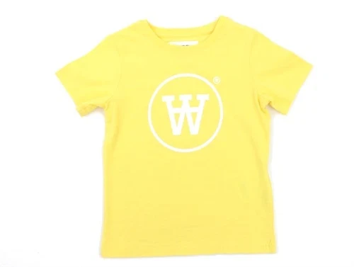 Kortærmet t-shirt i farven dandelion med hvidt dobbelt A patch fra Wood Wood.