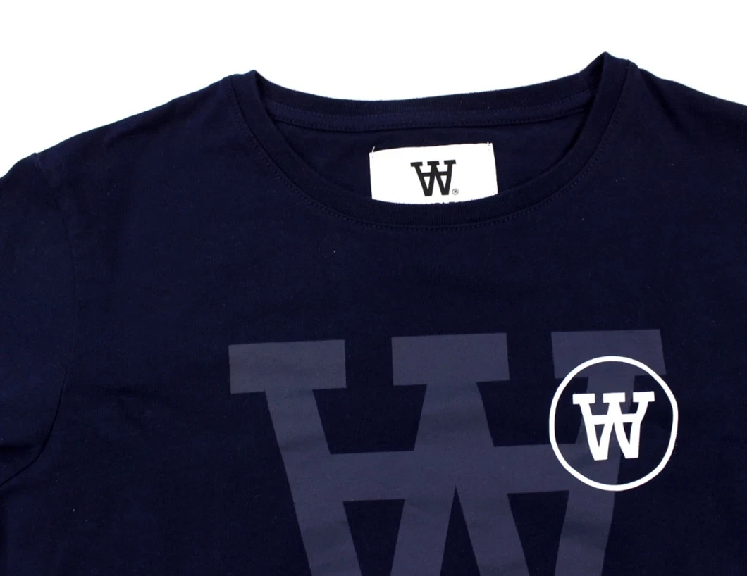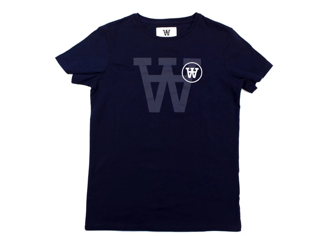 Kortærmet t-shirt i farven navy med dobbelt A logo fra Wood Wood.