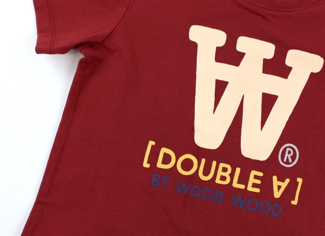 Kortærmet t-shirt i farven burnt red med dobbelt A patch fra Wood Wood.