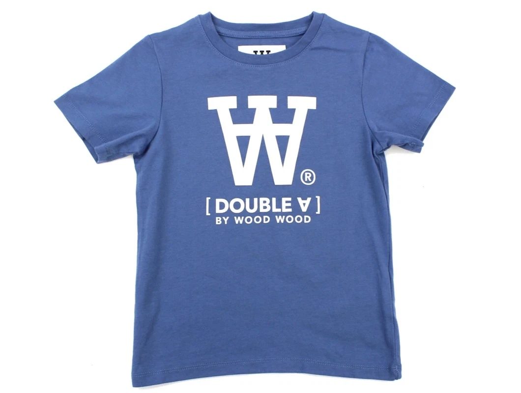 Kortærmet t-shirt i farven vintage bluemed hvidt dobbelt A patch fra Wood Wood.