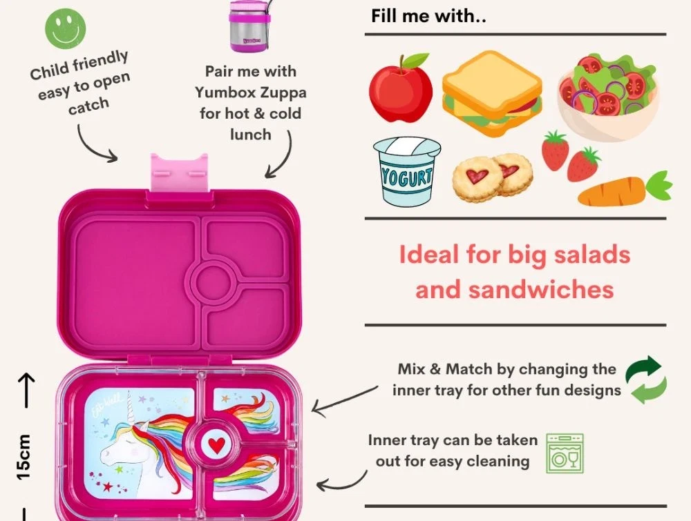 Yumbox Panino børnemadkassen er ideel til vuggestue, børnehave, skole og udflugter. Det smarte, børnevenlige design og de praktiske opdelinger gør det let at pakke en varieret og frisk frokost til dit barn.